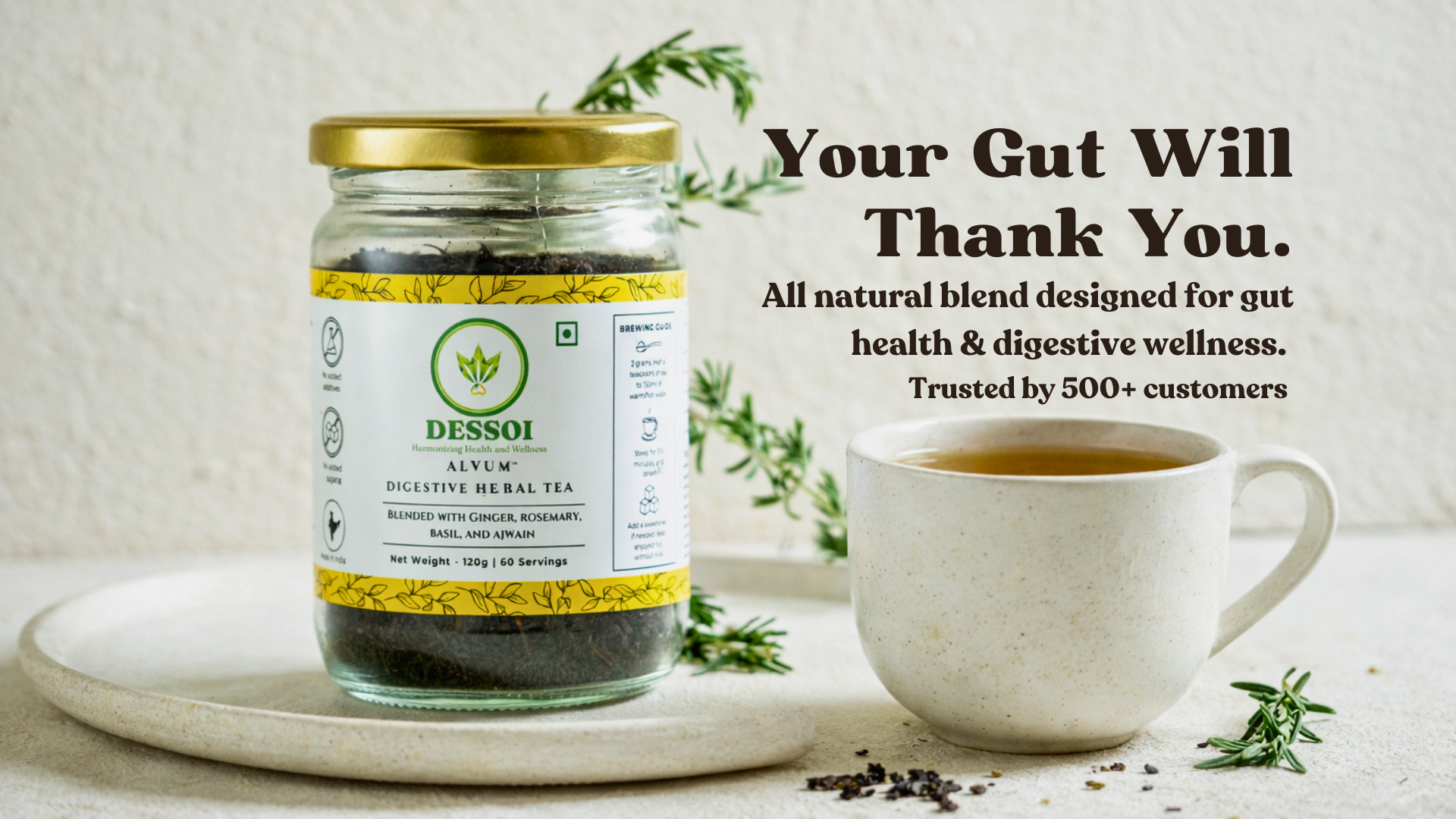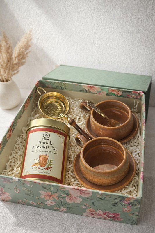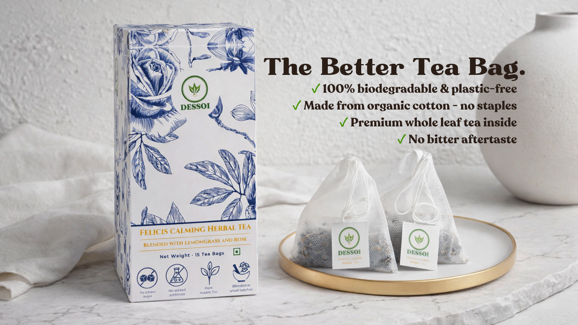 Dessoi was created to bridge this gap. By blending the best quality of whole-leaf Assam tea with carefully measured herbs, we retain the strength, colour, and warmth of chai - without artificial flavours, additives, or bitter aftertaste. Sourced directly from a single family-run 90 year old tea estate and blended in small batches, our teas are designed for everyday drinking that feels balanced, familiar, and quietly calming.